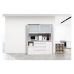 ふるさと納税 (ムラミグレー)【開梱設置】オッド キッチンボード 幅130cm 上置き付 耐震 引き戸 食器棚 オープンボード 完成品 カップボード ダ.. 福岡県大川市