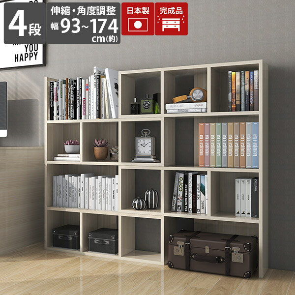 ラック 伸縮 オープンラック 本棚 4段ラック リビング収納 ディスプレイラック 飾り棚 完成品 スライド 間仕切り 木製 白 鏡面 木目 ホワイト オープンシェルフ 伸縮ラック 収納 シェルフ 収納棚 キッチン パーテーション コーナーラック 北欧 ナチュラル 【R+R90-4】 ☆