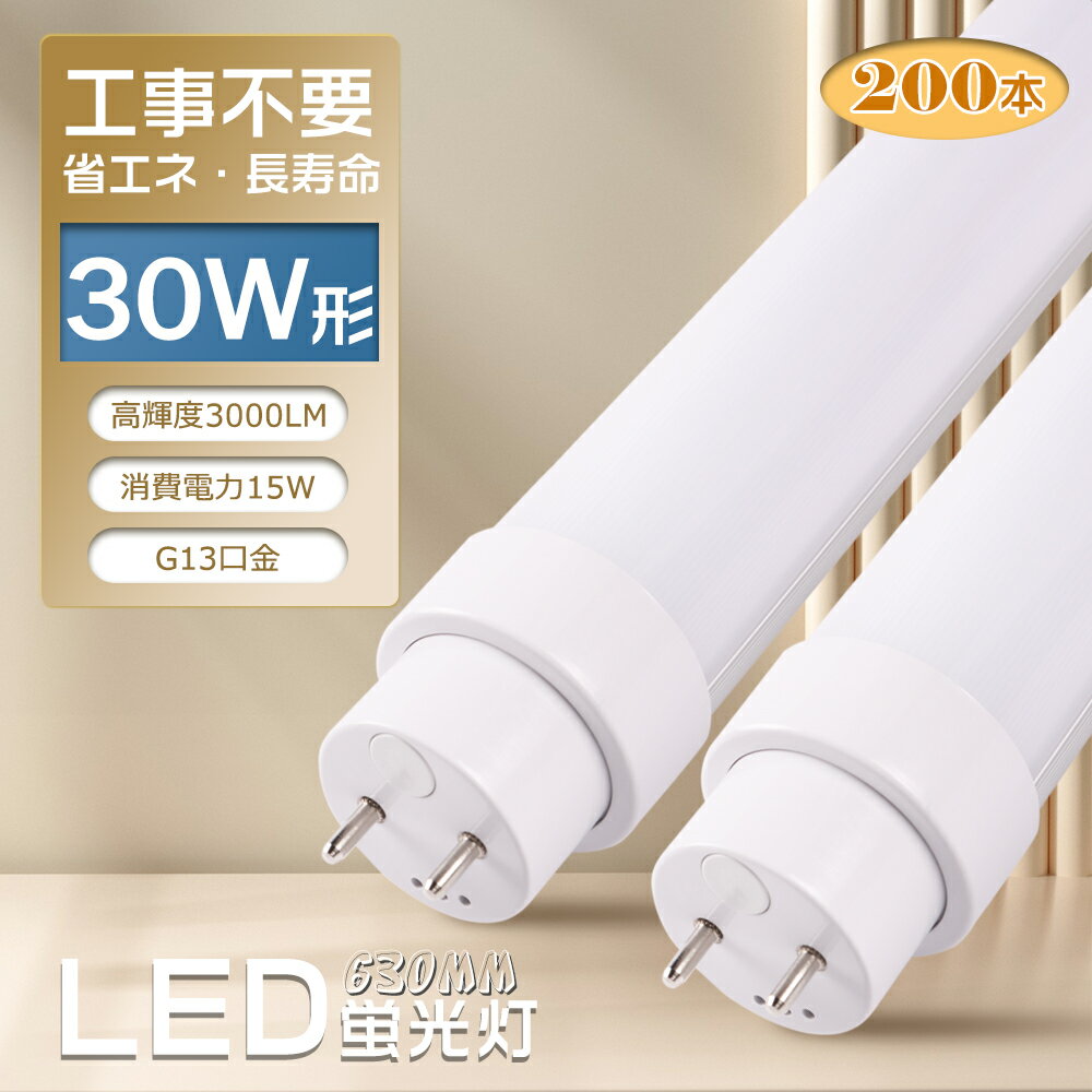 【お得200本】LED蛍光灯 直管 30W形 工事不要【インバータ形(FHF) スタータ形(FL) ラピッドスタータ形(FLR)】hf蛍光灯 630mm 63cm 消費電力15W 3000LM G13口金 両側給電ランプ LED直管蛍光灯 LED 蛍光灯 30形 キッチンライト 天井照明 家庭用 業務用 PSE認証 2年保証