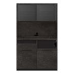 パモウナ 食器棚 幅160cm 奥行50cm 引き戸 ガラス扉 オープン 左側 家電収納 3段引出し キッチン おしゃれ HML-1602R