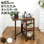 キッチンワゴン 幅65cm 片バタワゴン 作業台 折りたたみ キャスター付き 天然木 ( ワゴン 木製 キッチン収納 トロリー 片バタ バタフライ天板 )