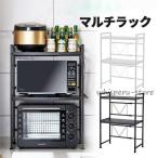 レンジ台 電子レンジ上ラック 幅伸縮式 2段式 キッチン 収納 棚 トースターラック 調理家電ラック ステンレス製 ブラック シルバー フック付き 整