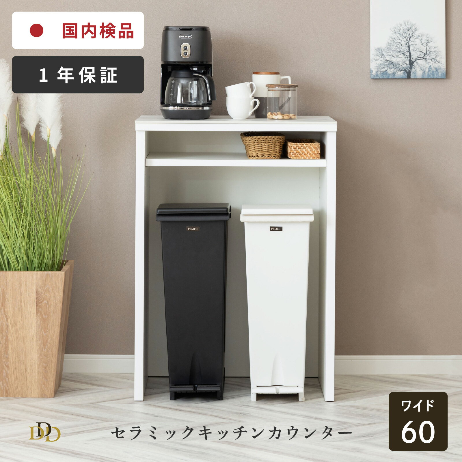 キッチンカウンター キッチン収納 食器棚 幅60cm 収納 引き出し収納 オープンダスト ゴミ箱置き フリースペース キッチンボード 国産 日本製