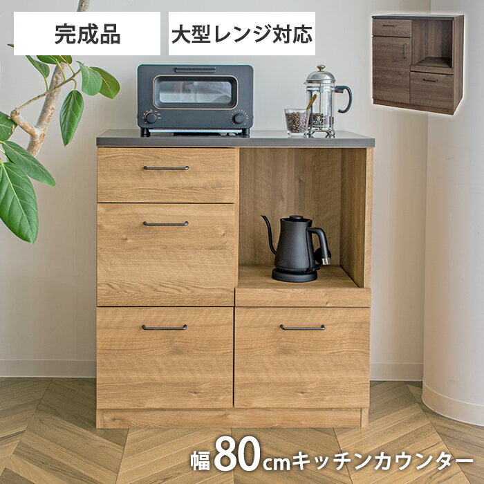 【12/3 20時〜最大48%OFFセール開催】 食器棚 ロータイプ 引き出し 完成品 幅80 一人暮らし おしゃれ キッチンカウンター ゴミ箱 完成品 テーブル 間仕切り コンパクト レンジ台 大型レンジ対応 キッチン収納 棚 ラック カップボード カウンター グラデ pd