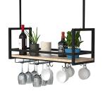 【並行輸入品】ワインラック、シーリングシェルフ 天井1段 モダンなフローティングシェルフ アイアンハンギングキッチン収納棚 レストラン/バー/ワ