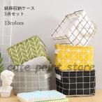 小物入れ 布製 収納ケース 3点セット 綿麻 机整理 収納ボックス チェック柄 ソフトバスケット 北欧風 収納箱 卓上 かご 収納袋 ラック