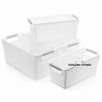 収納バスケット 収納ボックス プラスチック 小物収納 スリム ホワイト 卓上収納ボックス 小物入れケース 取っ手付き 整理ボックス キッチン収納かご 4個セット