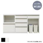 キッチンカウンター 食器棚 幅180cm ホワイト モルタル調 ホワイト ブラック キッチン収納 キャビネット モイス付 ダストボックス 左右入れ替え可能
