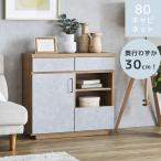 キャビネット オープン収納 引出し収納 スリム 収納 幅80 引出し 扉収納 奥行き30cm 木目柄 石目柄 フルオープンレール 開き扉