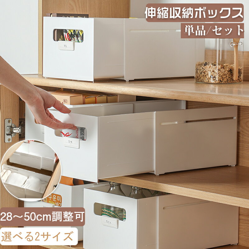 【店内特典15%OFFクーポン配布中】伸縮収納ボックス 単品/3個セット 収納ボックス 伸縮収納ケース 引き出し ボックス 伸縮 かご バスケット キッチン 引き出しスライド収納ケース キャビネット 洗面所 小物 お菓子 雑物 スムーズスライド 28~50cm調整可