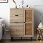 チェスト キャビネット 幅72cm ナチュラル ラタン調扉 可動棚 引き出し収納 アジャスター スチール脚 取っ手付 大容量 収納棚 リビング WEAVA ウィーヴァ 組...