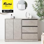 キャビネット 幅100cm 隠しキャスター付き 収納ラック おしゃれ 引き出し 本棚 ストーン柄