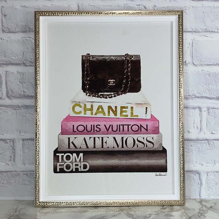 オマージュ キャンバスアート「ブック スタック ブラック バッグ(Mサイズ)」額縁付き 絵画 可愛い おしゃれ 額付きポスター 壁掛用 キャンバスアート ブック スタック ブラック バッグ 人気 プレゼント