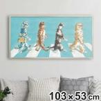 アートパネル オイルペイントアート 『アビーロード』 103×53cm ( 絵画 絵 アート インテリア 額 額入り 壁掛け ワイド ネコ 猫 )