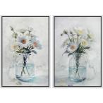 【並行輸入品】GUTTATY ファームハウスフラワーウォールアート装飾 ホワイトフローラルキャンバスウォールアート 花の絵付き花瓶 ヴィンテージ