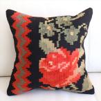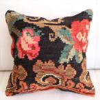 オールドキリム クッションカバー 41×41cm ブルガリア 花とつる草 Old Kilim Cushion