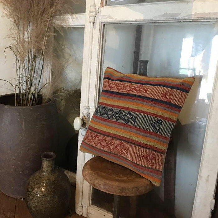 オールドキリムクッションカバー 40cm /Old Kilim Cushion 流れる水のモチーフ