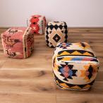 スツール 椅子 玄関 キリム ビーズクッション かっこいい 派手 オルテガ 30×30cm オットマン 低め スクエア ボックス