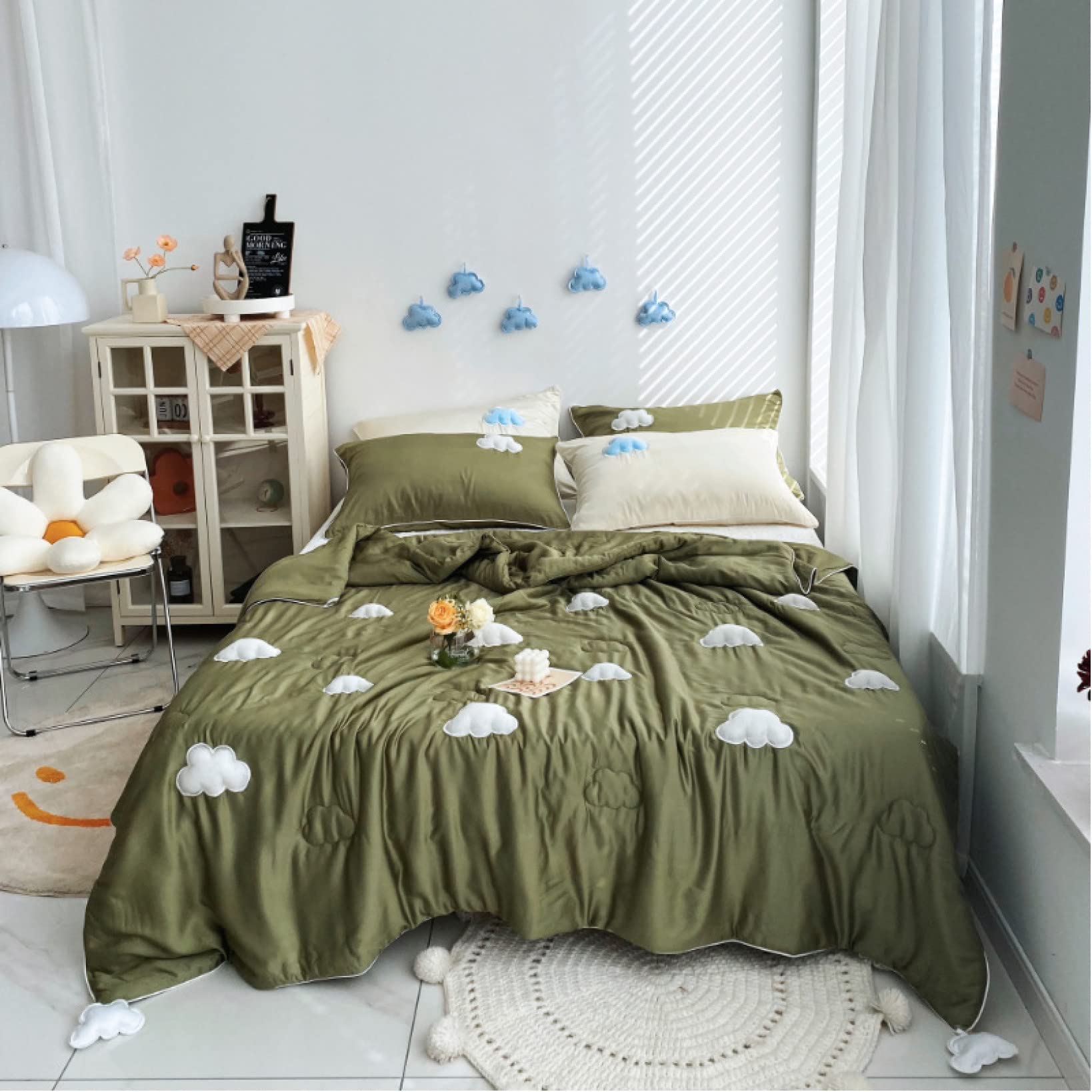 キルトケット シルク風 立体的な 雲柄 防臭 極上の肌触 肌にやさしい 薄手の布団 シングル 吸湿性 肌掛け布団 ダブル カラー 防ダニ 夏のキルト 洗濯可 夏ふとん抗菌 夏布団 身体にやさしくフィット プレミアム 200*230 夏掛け布団