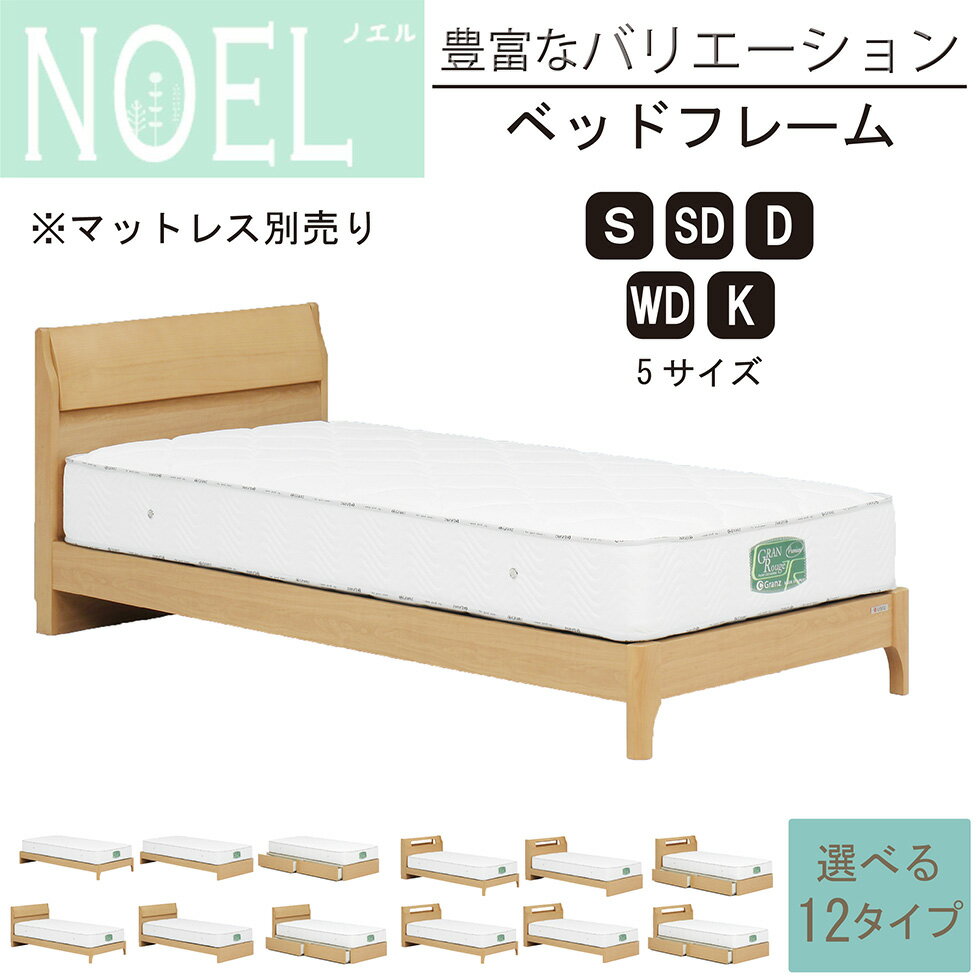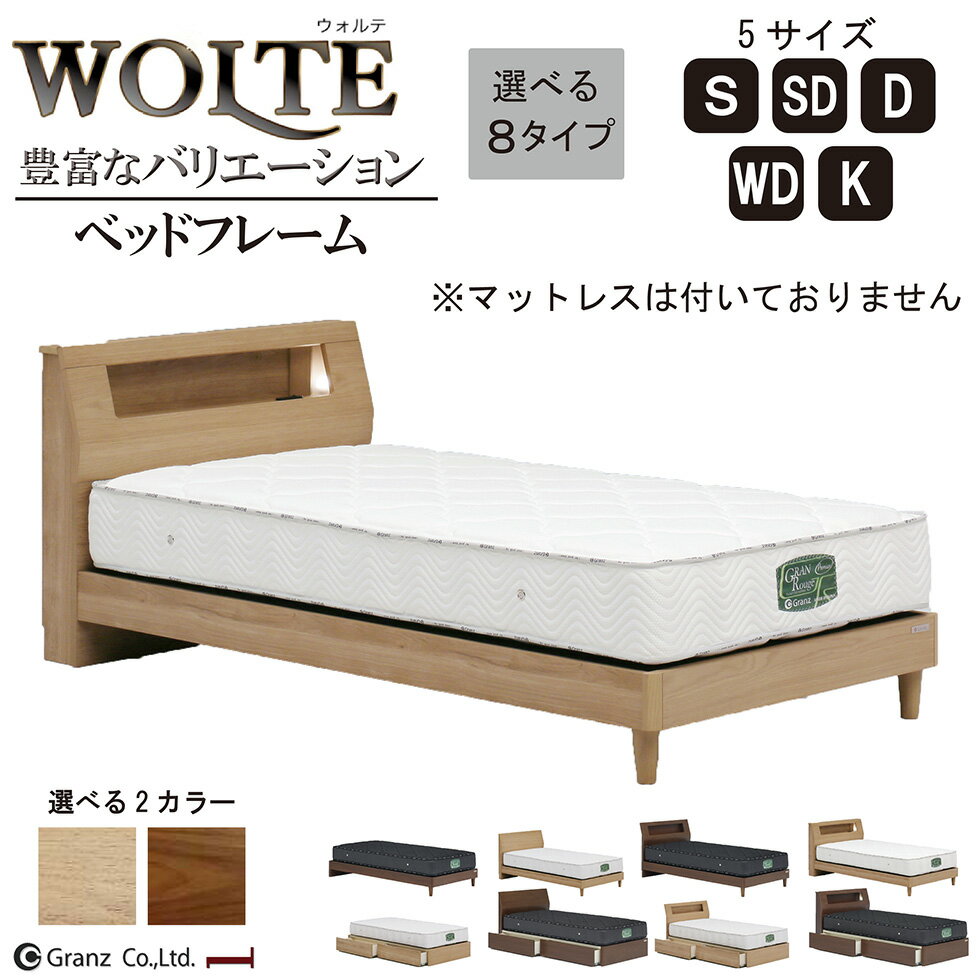 【マラソン期間10%OFFクーポン配布】ベッド ベット シングル セミダブル ダブル ワイドダブル キング ベッドフレーム すのこ ヘッドレス 引き出し 脚タイプ ライト付き コンセント付き 収納 ブラウン お掃除ロボット 引出し付 選べるタイプ おしゃれ グランツ 送料無料