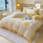 姫系 秋冬 ベッド用品 4点セット 布団カバー キング 掛け布団カバーセット クイーン 快眠 防寒対策 北欧風 ふわふわ フランネル 敷き布団カバー 枕