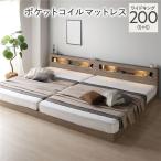 ベッド ワイドキング 200 S+S 3ゾーンポケットコイルマットレス付 連結 低床 照明 宮付 すのこ ローベッド CONCASA コンカーサ 送料無料