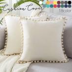 クッションカバー カバーのみ 単品 45 45cm 北欧風 ベルベット調 ポンポン付き 正方形 スクエア 無地 おしゃれ 秋冬