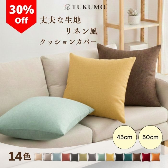 クッションカバー 45×45cm おしゃれ 正方形 北欧 インテリア 麻 リネン 無地 ソファ 白 緑 ブラック 赤 など 全8色