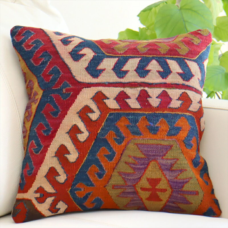 【15%OFFクーポン対象】アンティークキリムクッションカバー50cm角 ヴィンテージ Kilim Cushionシャルキョイ/ネイビー・レッド・グリーン