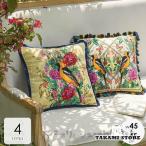 クッションカバー カバーのみ 北欧 45×45cm おしゃれ 高級感 フリンジ 鳥 おしゃれ グリーン イエロー高級感 ホテルライク 上品 北欧ナチュラル