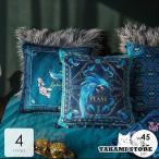 クッションカバー カバーのみ 北欧 45×45cm おしゃれ フリンジ 高級感 鳥 シック ブルー ブラック可愛い ラグジュアリー フェミニン おしゃれ 上品