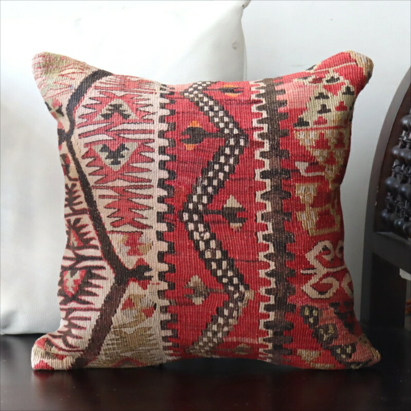【15%OFFクーポン対象】オールドキリム クッションカバー40×40cmカイセリ地方 チフカナットキリム