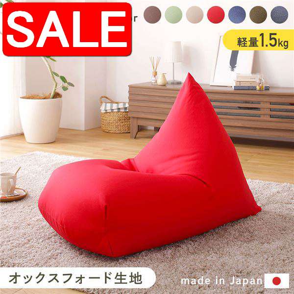 【スーパーSALE 10%OFF!】 ビーズクッション ソファ レッド 日本製 リラックス 三角 背もたれ 軽量 取っ手付き クッション 1人掛け ファブリック オックスフォード 生地 北海道 沖縄 離島への配送不可