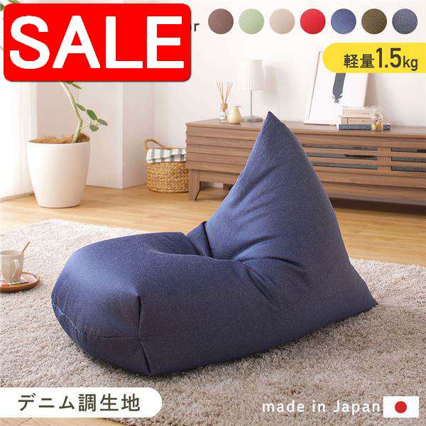 【スーパーSALE 10%OFF!】 ビーズクッション ソファ ネイビー 日本製 リラックス 三角 背もたれ 軽量 取っ手付き クッション 1人掛け ファブリック 撥水 デニム 調 生地 北海道 沖縄 離島への配送不可