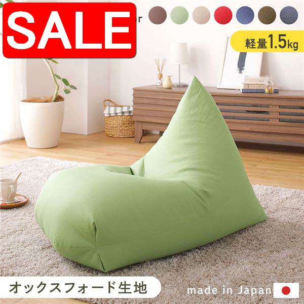 【スーパーSALE 10%OFF!】 ビーズクッション ソファ グリーン 日本製 リラックス 三角 背もたれ 軽量 取っ手付き クッション 1人掛け ファブリック オックスフォード 生地 北海道 沖縄 離島への配送不可