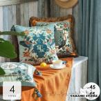 クッションカバー カバーのみ 北欧 45×45cm おしゃれ 花柄 レトロ感 シック おしゃれ ライトブラウン ブラウン ブルーフェミニン ナチュラルテイスト