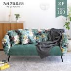 2人掛け ソファ クッション 幅160cm ボタニカル 柄 リビング インテリア 花柄 かわいい おしゃれ エレガント グリーン tohma ナチュリア 2pソファ 「才:27」