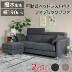 送料無料 可動式ヘッドレスト クッション付き ファブリック 3人掛けソファ ハイバック ソファ 布 ソファーセット オットマン おしゃれ 金属脚 ローソファ 2512n
