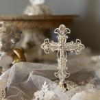 ラインストーン パール クロス S 十字架 置物 シルバー クリスタル 高さ11cm 室内 オーナメント おしゃれ 可愛い ロココ アンティーク調