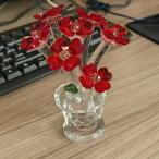 クリスタル 花 置物 オブジェ 赤 レッド 透明 クリア 綺麗 金運 開運 運気アップ インテリア 玄関 オフィス 寝室 風水 開運 健康運 出世運 家庭運 家内安全