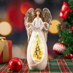 【並行輸入品】 Vigdur クリスマスエンジェルフィギュア - ライト付き樹脂製天使像と置物 クリスマスツリーとトナカイの家族 クリスマステーブル装飾