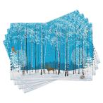 【並行輸入品】Ambesonne 冬用プレースマット 4枚セット 雪の結晶とクリスマス 松の木のシルエット クリスマス 洗濯可能なファブリックプ