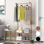 ハンガーラック ブティックハンガー 下棚付き おしゃれ スチールハンガー木製 棚2段 置き台付き 幅64cm 高さ152cm オープンラック 玄関収納