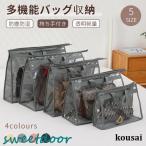 バッグ 収納 吊り下げ ラック カバン クローゼット ハンガーラック バッグ収納ラック 四季通用 メッシュ おしゃれ シンプル 4層 見せる