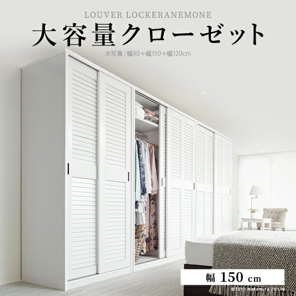 【10%OFF★Xmas期間限定クーポン】ワードローブ クローゼット 引き戸 ルーバー引き戸 大容量クローゼット 〔アネモネ〕 幅150cm ロッカー タンス 壁面収納 衣類収納 収納 整理 服 洋服 衣類 省スペース ハンガーラック クローゼットハンガー 除湿