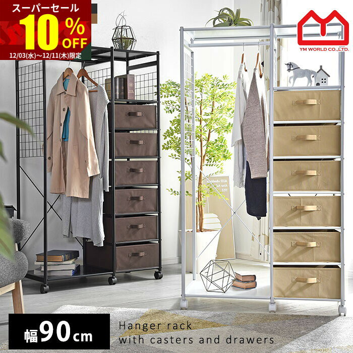 ハンガーラック スリム 引き出し 収納 棚付き 頑丈 おしゃれ パイプハンガー 衣類収納 クローゼット チェスト ワードローブ キャスター付き 収納ラック