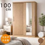 ワードローブ ミラー付き 引き戸 幅100cm クローゼット 鏡付き スライド扉 大容量 ハンガーラック 北欧 大川家具