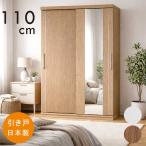 ワードローブ ミラー付き 引き戸 幅110cm クローゼット 鏡付き スライド扉 大容量 ハンガーラック 北欧 大川家具