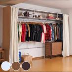 伸縮クローゼット 上置き棚付き幅188-305cm 日本製 大型クローゼット ハンガーラック 送料無料 上棚 カーテン付き