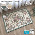 玄関マット 室内 屋内 手洗いOK すべり止め付き おしゃれ ミントン柄 グリーン ベージュ シェニール織り 上品 約50×80cm 約60×90cm 約70×120cm 送料無料